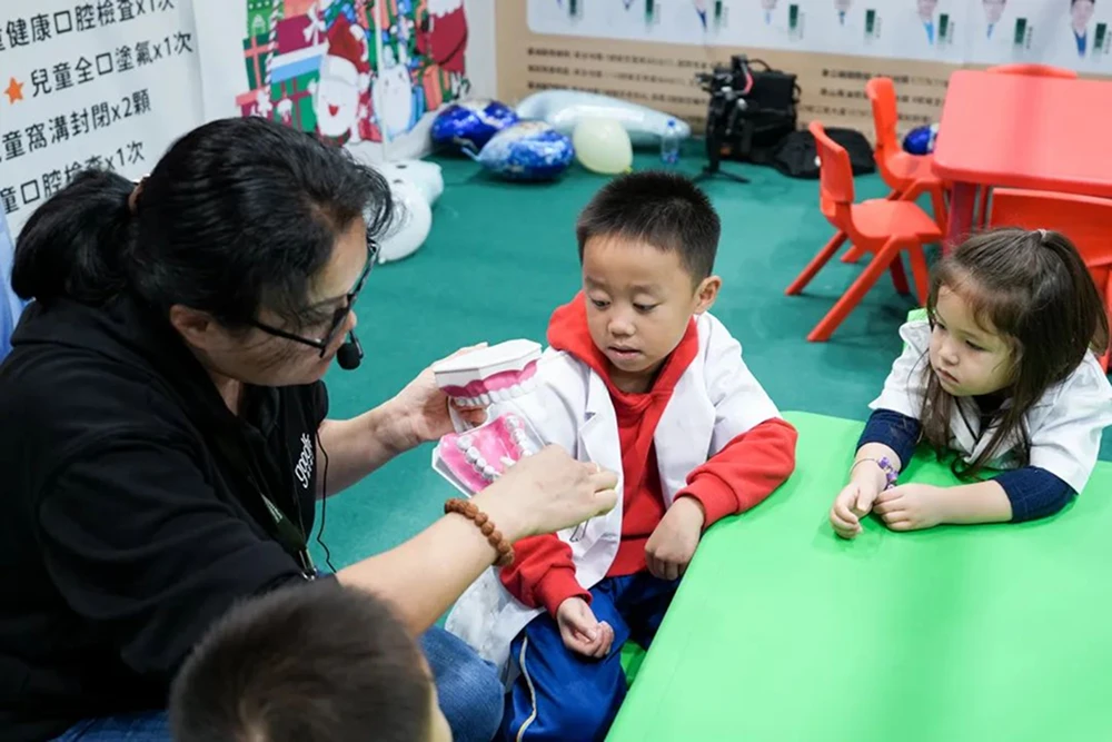 在本次香港超级亲子用品展中,格伦菲尔口腔精心打造的展区成为了亲子家庭的热门打卡点,可爱的卡通形象装饰、团队成员们的热情,瞬间拉近了与小朋友们的距离,为大湾区的市民和小朋友们带来了一场别开生面的口腔健康盛宴,在展会上成为焦点之一。